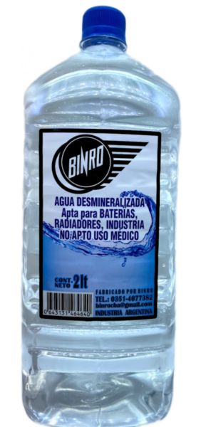 Agua que mediante un proceso químico controlado por un profesional queda apta para distintos usos.USO: industrial , automotor ,etc. NO APTO PARA CONSUMO HUMANO